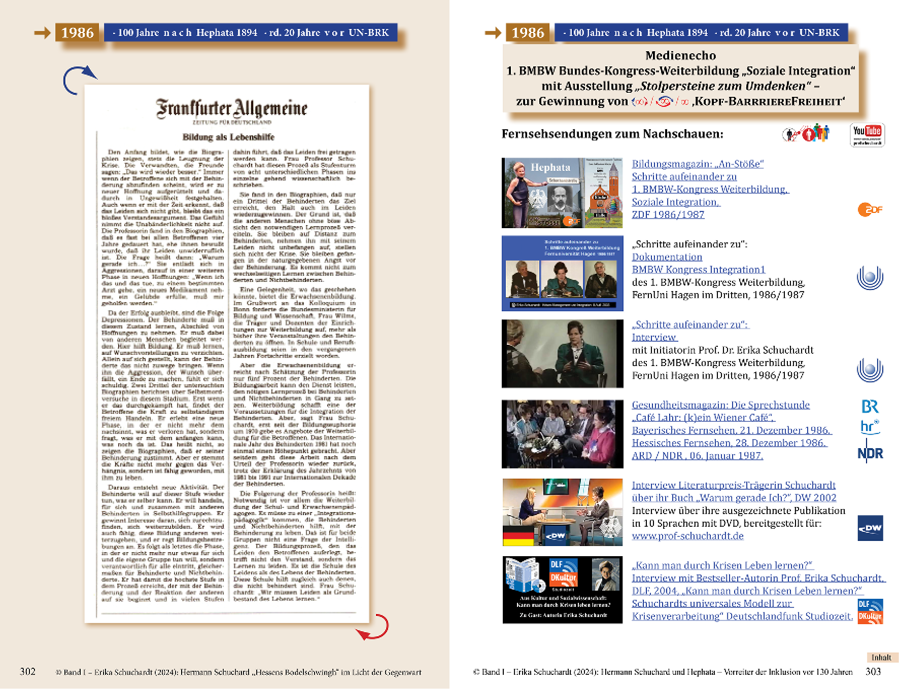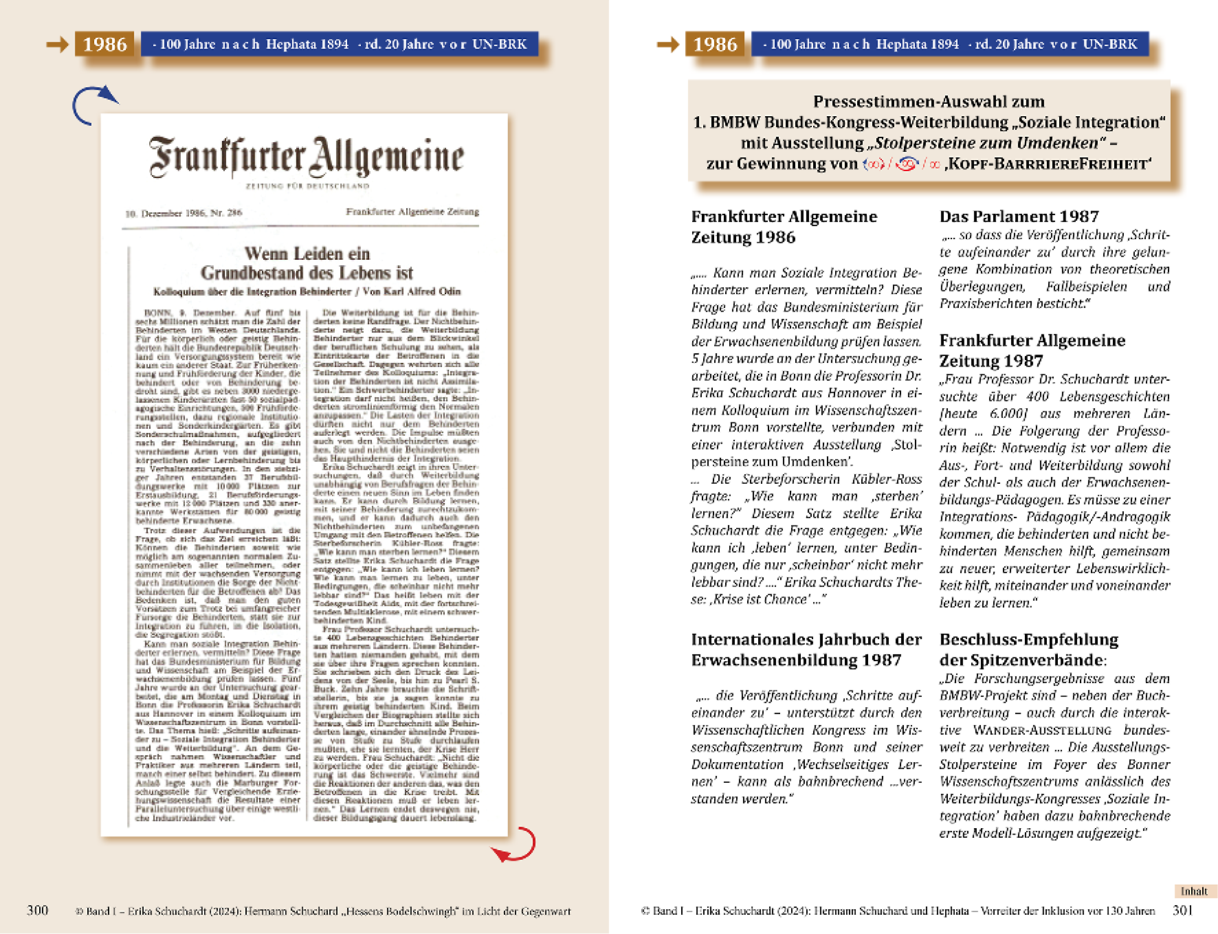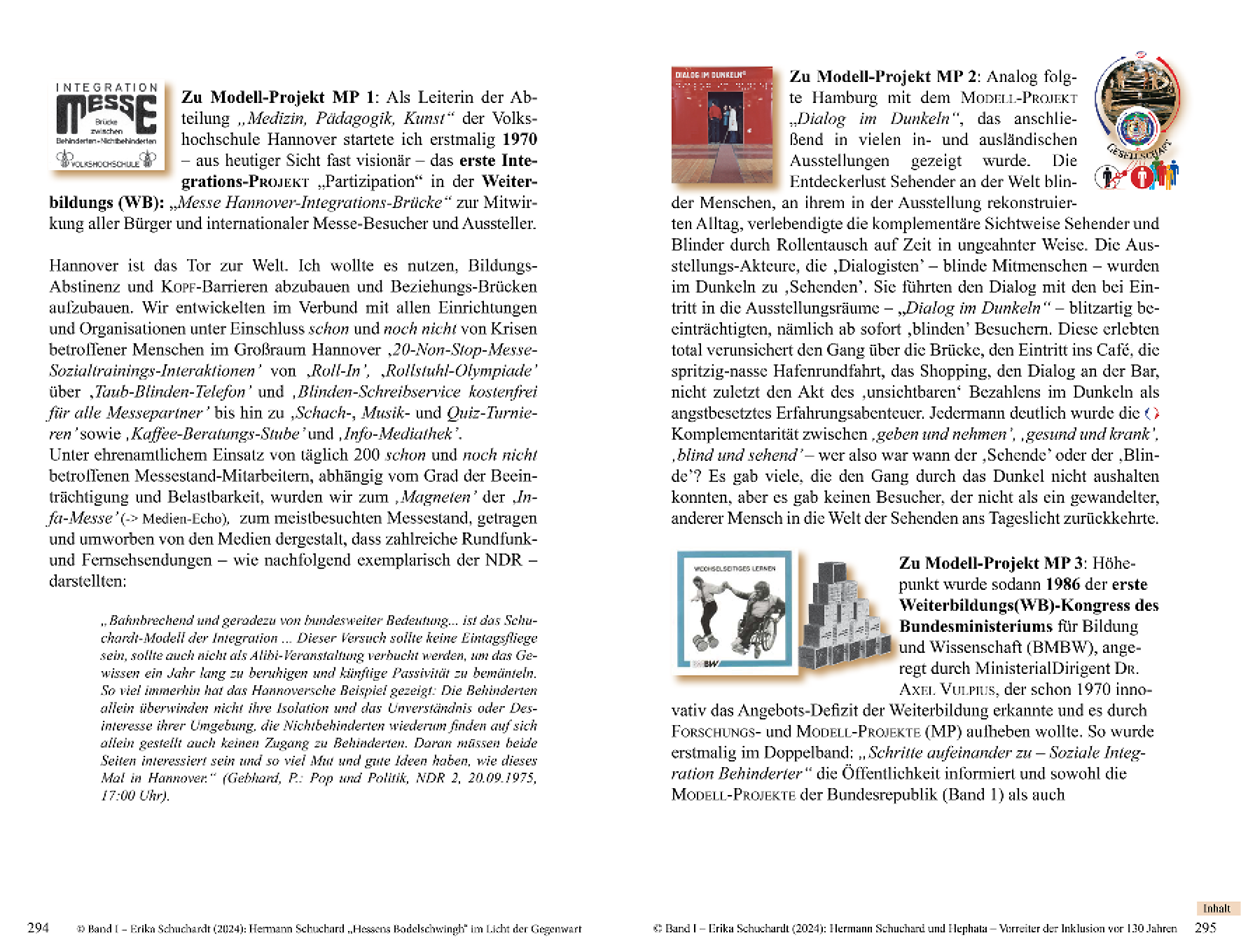 -> 1894: Schuchard/t Hephata Öffne Dich -> 1975: Messe Hannover -> 1986: BMBW-Kongress -> 1994: Dt. Bundestag Integ.Gipfel -> 1994: Dialog im Dunkel KomplementärThesen zum Gewinn von